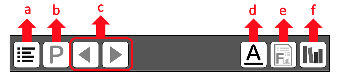 図303 PDFモードの「目次」のアイコン(上)、リフローモードの「目次」のアイコン(下)